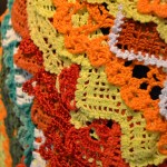 Parasta mekossa on tuo värisävyjen vaihtelu. Pitsejä oli nimittäin lopulta kertynyt varastoon niin paljon, että pystyin valikoimaan vain sopivan väriset pitsit käyttöön. Mekkoon on kulunut käsittämätön määrä eri ihmisten käsityötaitoa ja siinä on säilöttynä kymmeniä erilaisia pitsimalleja.